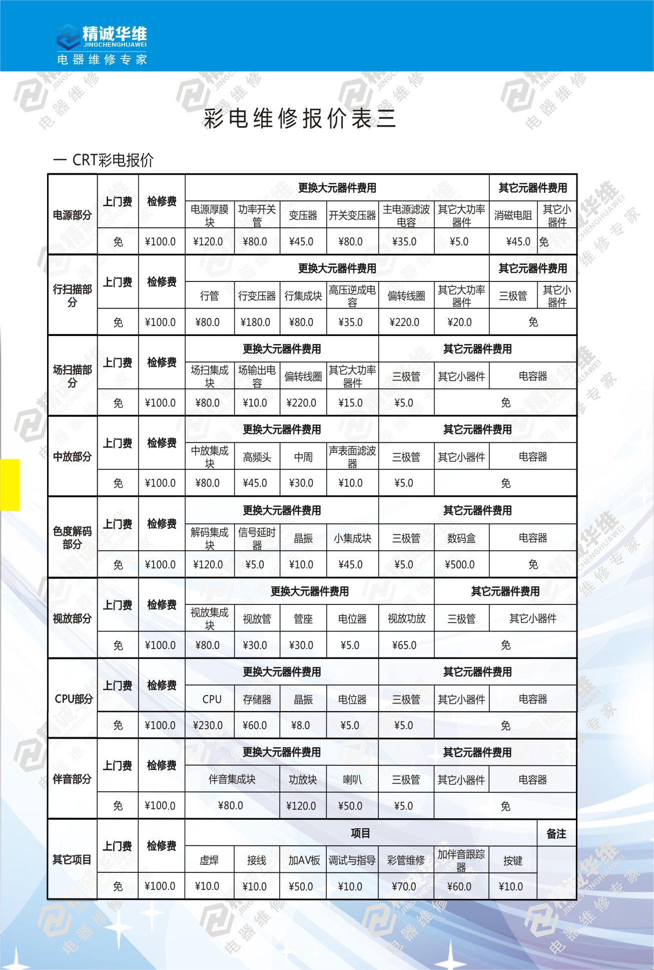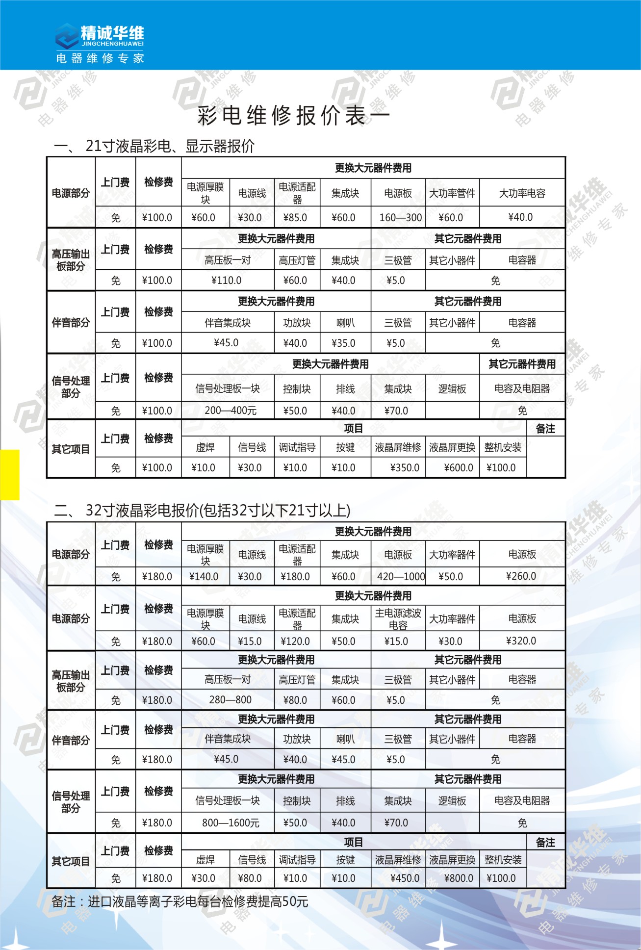 電(diàn)視維修報價